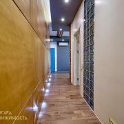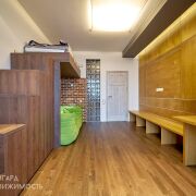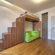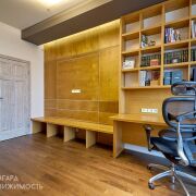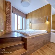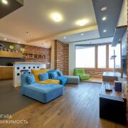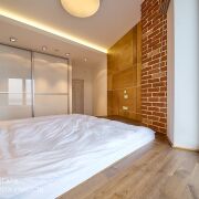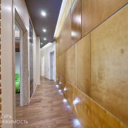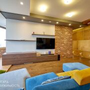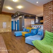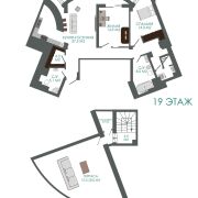 - просторная кухня-гостиная 37.5м2, объединенная с балконом, жилая комната (детская либо рабочий кабинет), спальня, гардеробная, два санузла с душевой и ванной, постирочная комната, кладовая.