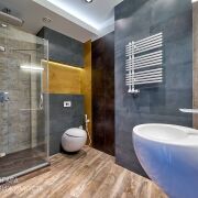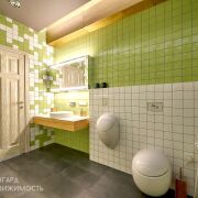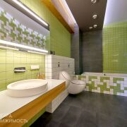 - Сушильная и стиральная машины Вosh, бойлер подогрева воды, сантехника Hansgrohe, керамика Laufen, полотенцесушители Oventrop c регуляторами Zehnder, в большом санузле столешница, умывальник, зеркало, шкаф Keuco.
