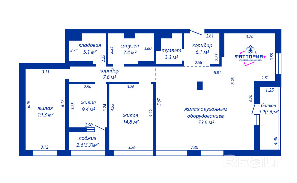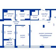 Продуманная планировка с 3-мя изолированными спальнями, хоз.комнатой, гардеробной и просторной кухней-гостиной.