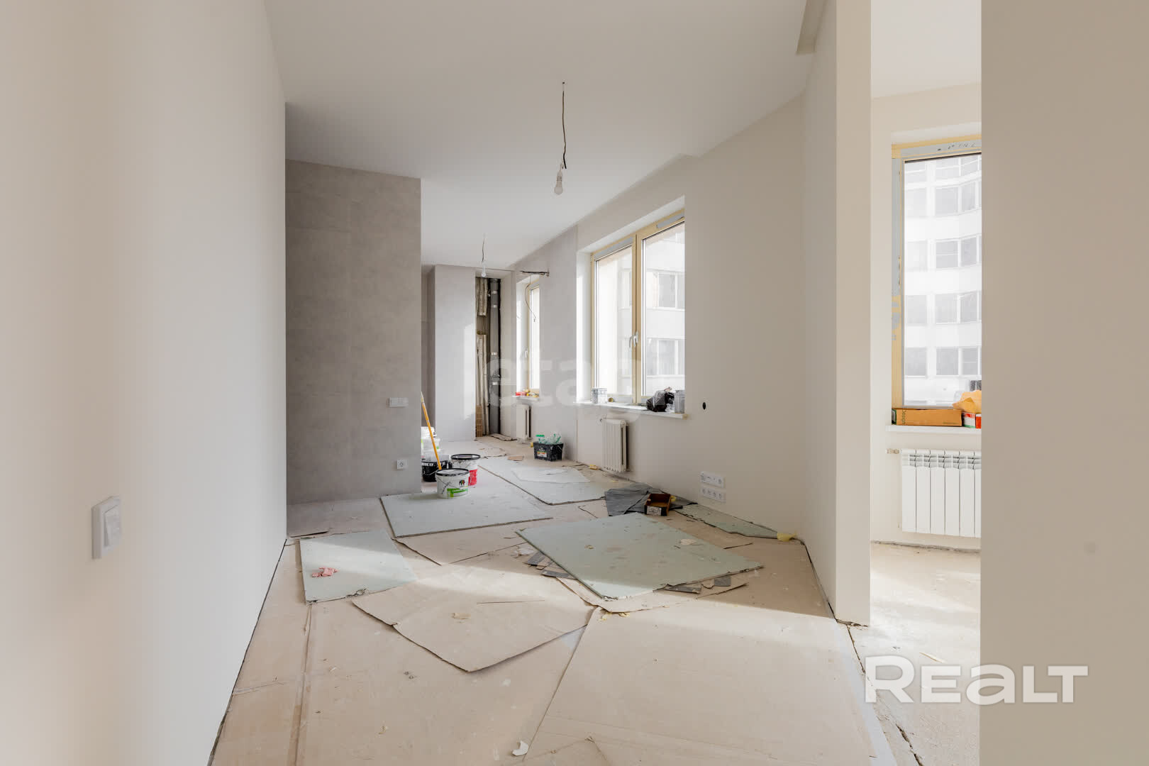 Квартира расположена на 4-м удобном этаже. Площадь квартиры позволяет создать комфортное пространство для жизни. Выделены две жилые комнаты, просторная кухня-гостиная, санузел и отдельная гардеробная.