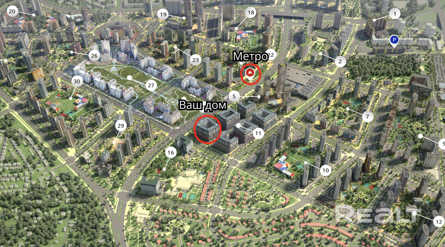 Удобное расположение относительно ценра г.Минска (10 мин. до ЖД вокзала), транспортного сообщения (2 станции метро, автобусы, маршрутки), новые и современные дет.сады, школы с бассейнами и хореографическими классами, кружки, секции, тренажерные залы, торговый центр АвиаМолл, магазины, рестораны, кафе, поликлиники, мед.центры