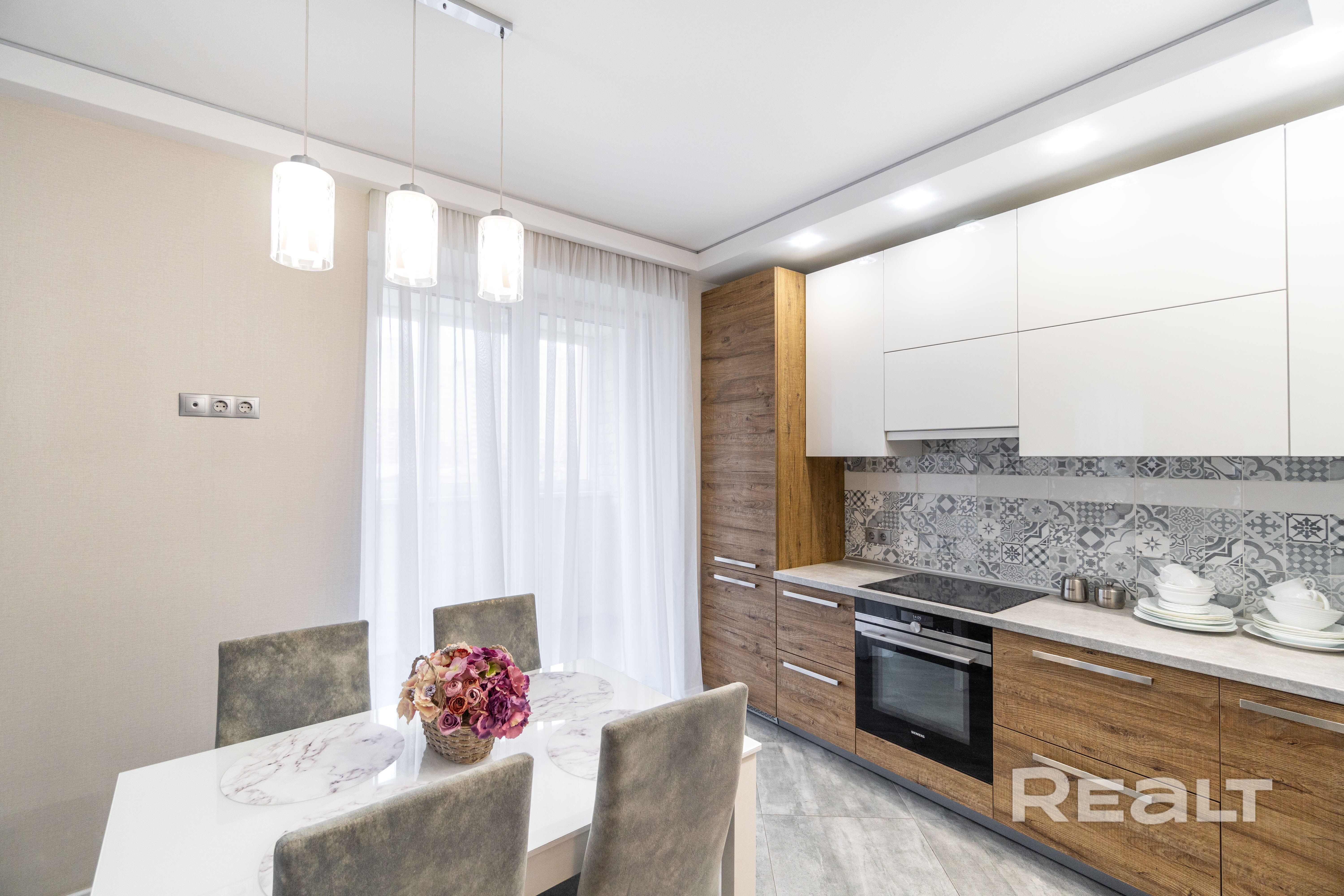 Техника: холодильник LG; духовой шкаф с функцией СВЧ (Siemens); варочная панель Bosch; кухонная вытяжка; посудомоечная машина Indesit; установлен фильтр для очистки воды; установлен бойлер; стиральная машина LG; видеодомофон с наблюдением и записью.