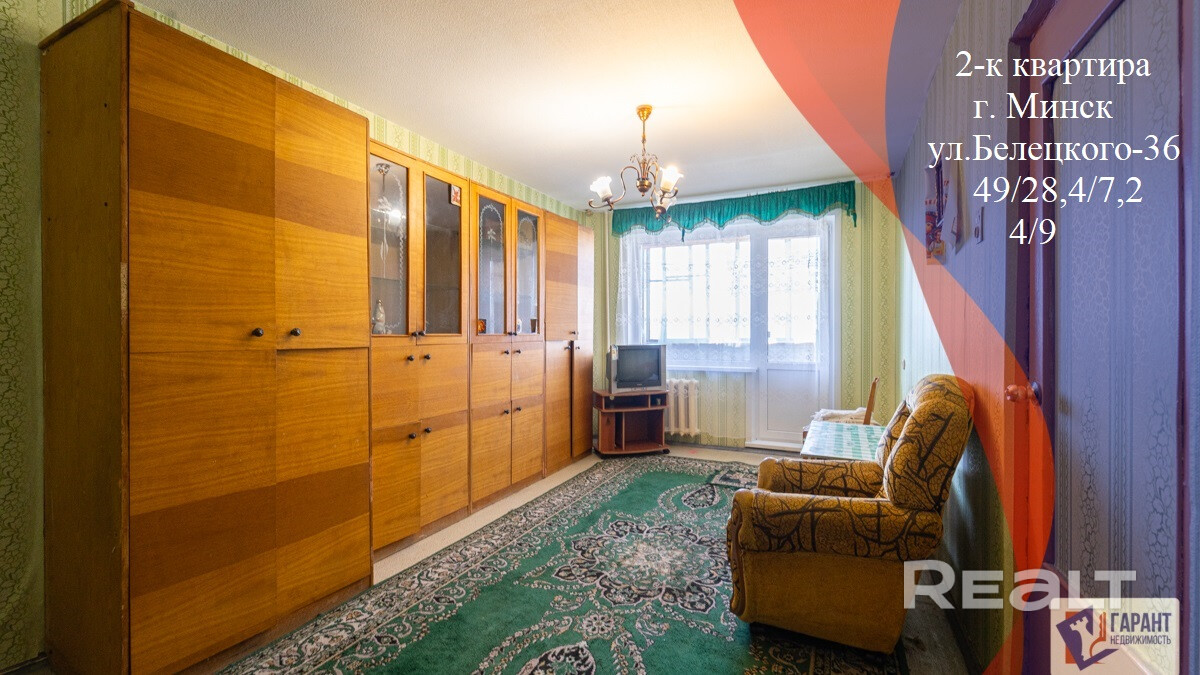 Продается 2-комнатная квартира по улице Белецкого 36, Малиновка-3. Квартира расположена на 4-м этаже. Квартира в жилом состоянии под косметический ремонт, на полу жилой комнаты и коридора уложен линолеум, на кухни – линолеум, ровные потолки, просторная жилая комната 17.1 м2 с застекленной лоджией 4.1 м2, комната 11,3 м2 , кухня – 7.2 м2, стеклопакеты, металлическая входная дверь. Тамбур на две квартиры, есть свое место для хранения. Новый лиф. Чистый подъезд. Стоянка возле дома. Зеленый, тихий двор. Квартира светлая и теплая, Развитая инфраструктура!!! Возле дома расположены: - школы № 208, 213; детские сады № 544, 560; - бассейн Нептун, спортивный комплекс М. Мирного; - ТЦ «Maximus», супермаркет «ЕВРООПТ Super», продуктовый рынок, банк, аптека; - детская поликлиника №8, взрослая поликлиника №25; - зеленый благоустроенный парк для отдыха и прогулок Удобное транспортное сообщение!!! До станции метро «Малиновка» - три остановки общественным транспортом или пешком 2.2 км. Остановки общественного транспорта возле дома. Отличный вариант квартиры в тихом спальном районе с развитой инфраструктурой – есть все необходимое для комфортной жизни!!!