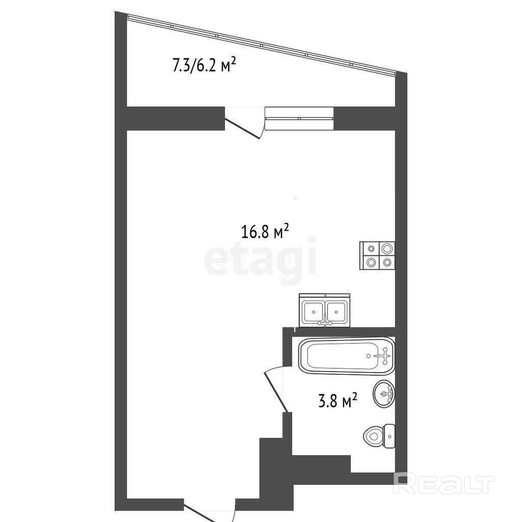 Площадь: общая 24,2; жилая 20,4; СНБ 26 (кв.м).