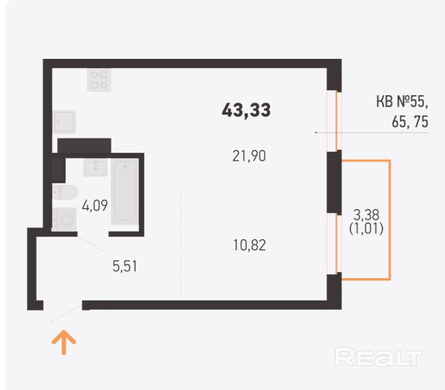 Площади квартир: от 25,81 кв.м до 102,59 кв.м.
