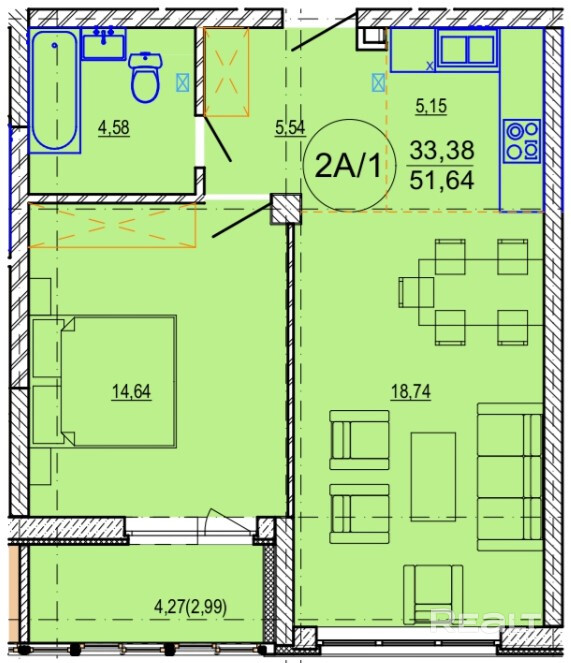 • высота потолков — 2,5 м; 21 этаж – 3 метра;