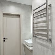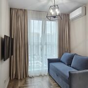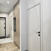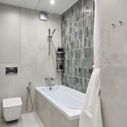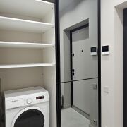 Вместительный встроенный шкаф в прихожей и гардеробная в спальне. Установлена качественная, импортная сантехника. На период отключения горячей воды установлен водонагреватель. В квартире есть кондиционер.