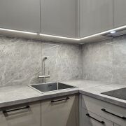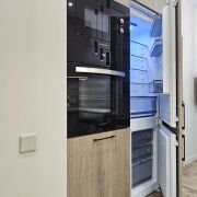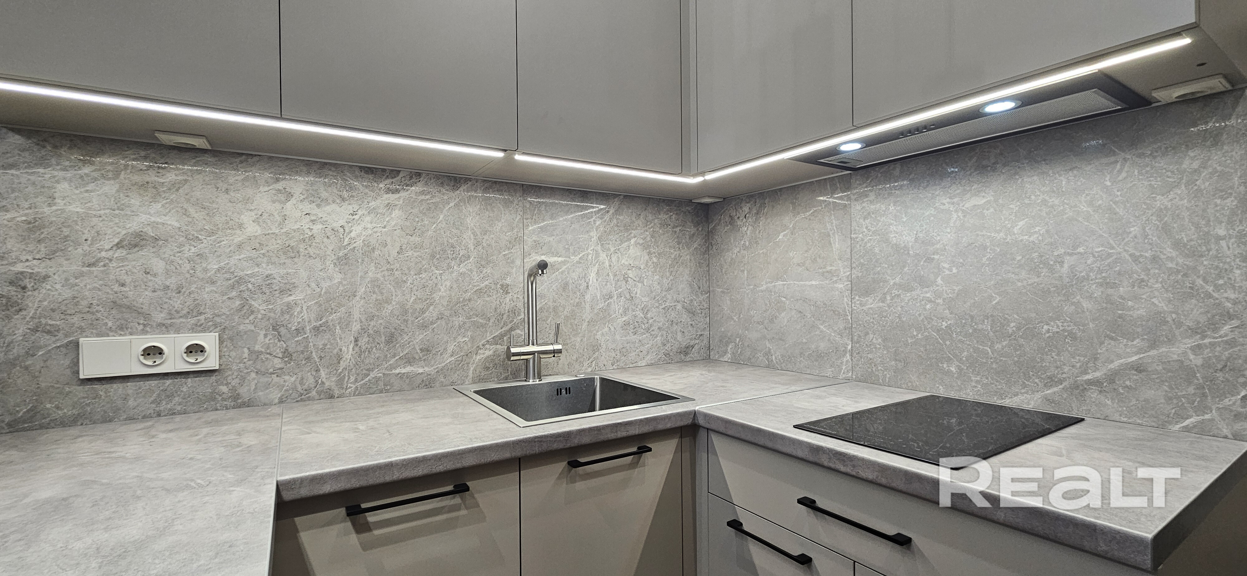 Вся необходимая техника для комфортного быта есть и остаётся после продажи: встроенная посудомоечная машина, духовой шкаф, варочная поверхность, встроенная вытяжка, встроенный холодильник.