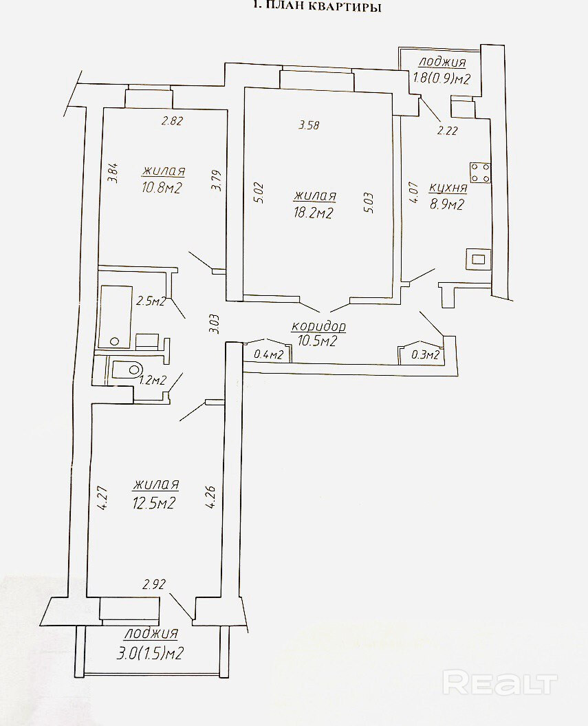 Отличная планировка: общая площадь квартиры по СНБ - 67,7 м2; жилая-1-12,5 м2; жилая-2-18,2 м2; жилая-3-10,8 м2; санузел-2,5 м2;туалет-1,2 м2; кухня-8,9 м2; коридор-10,5 м2! Лоджия1-1,8 м2! Лоджия2-3,0 м2! 6/9 этаж; дом - 1994 года постройки! Квартира очень теплая, светлая, аккуратная; готова к проживанию! Аккуратный подъезд, прилежные соседи; приглашаем на просмотр!