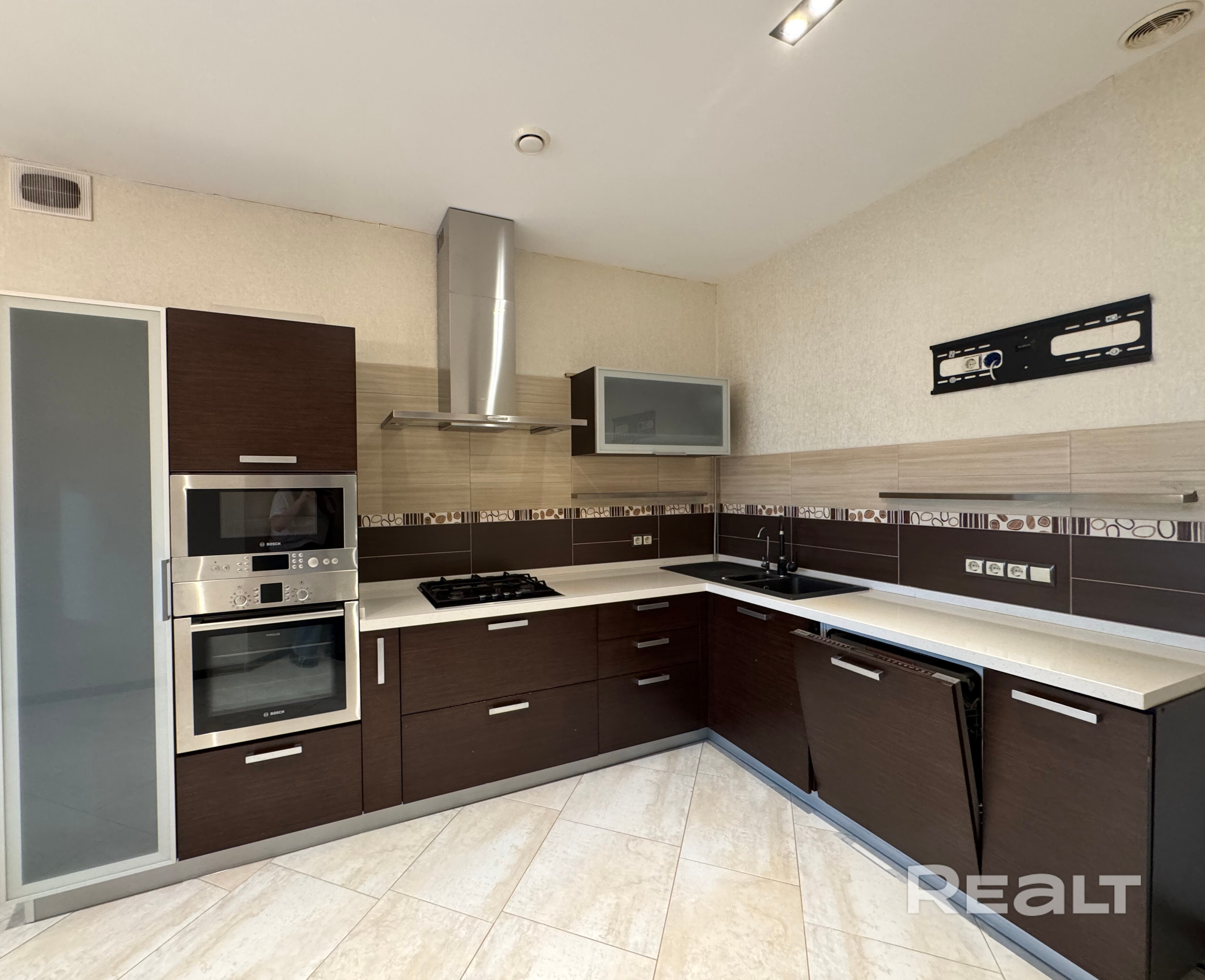 Просторная кухня 15 м2 с техникой Bosh (посудомоечная машина, микроволновая печь, духовой шкаф).