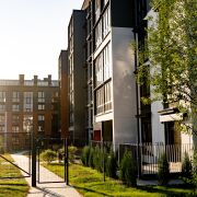 Территория двора сохраняет концепцию закрытой территории без автомобилей и парковок. Ограждение еврозабором высотой 1,6 м. Видеонаблюдение дворовой территории и по периметру группы домов.