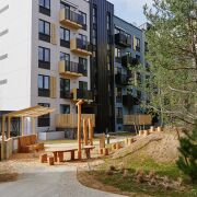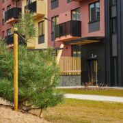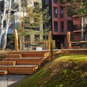 Внутреннее благоустройство двора будет создано из сохраненных лесных деревьев, к которым в дополнение будут высажены кустарники и многолетние травы. И будет включать:
