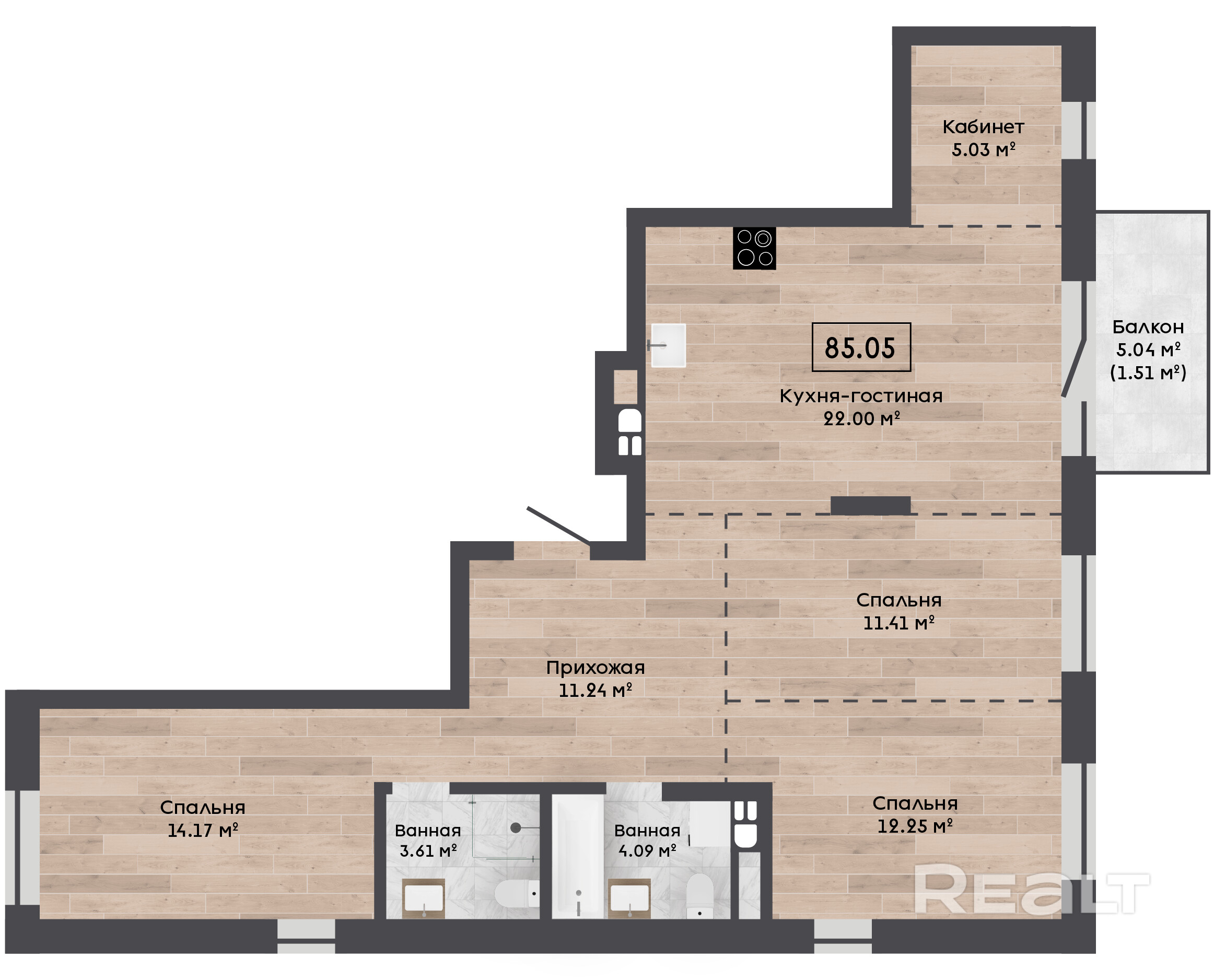 85.05 м²