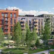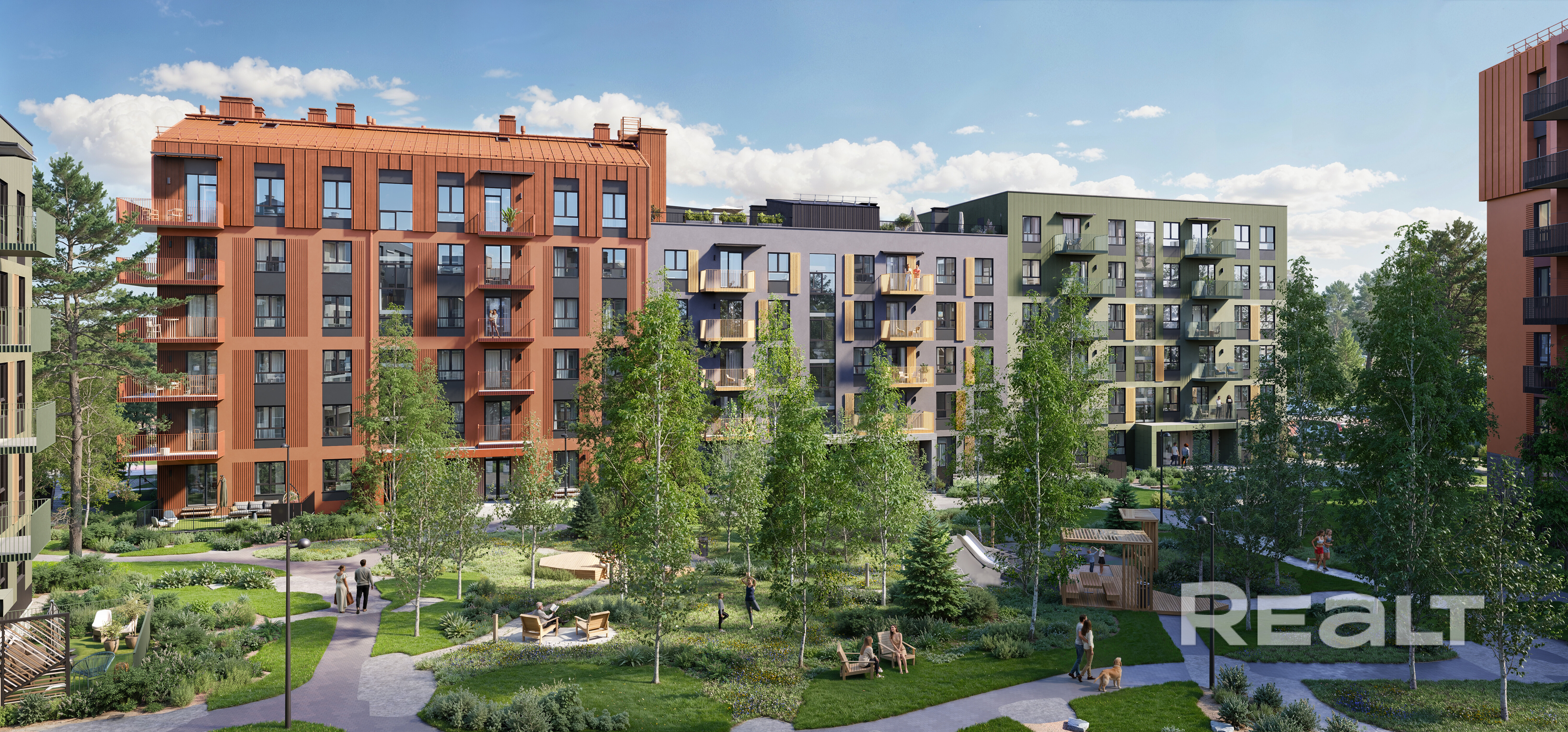 Благоустройство зеленого коридора в соседстве с другими ситихаусами – это большая зона для игр. Сохраненные деревья выступят естественным шумовым барьером для жителей близлежащих домов. Наполнение: