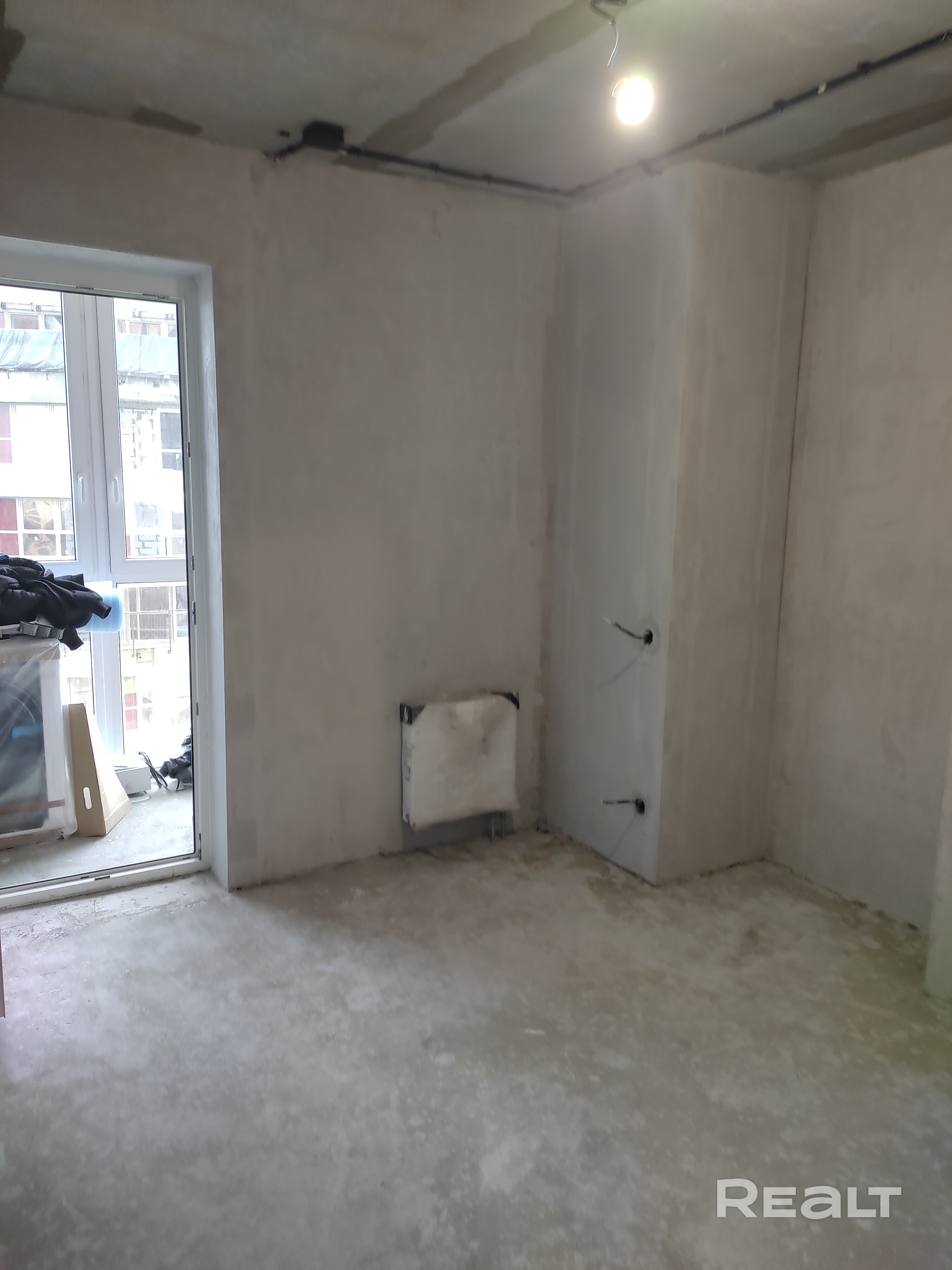 Новостройка , черновой ремонт , стены оштукатурены , разводка электрики , увеличен санузел и ванная комната