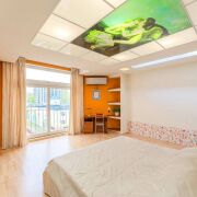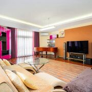 Светлая и просторная, с окнами на три стороны и высотой потолков свыше 3м, оформленная изысканной рукой дизайнера, использовавшего элитные материалы и оборудование, итальянскую и финскую мебель. Квартира находится на высоком 4-м этаже семиэтажного дома с лифтом.