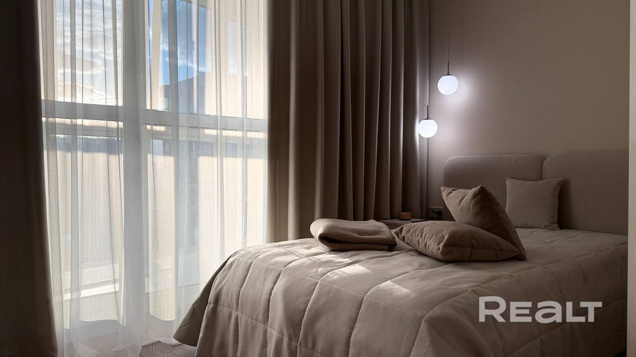 Функциональная видовая студия с дизайнерским ремонтом в ЖК "Минск Мир", кв-л "Тропические острова"