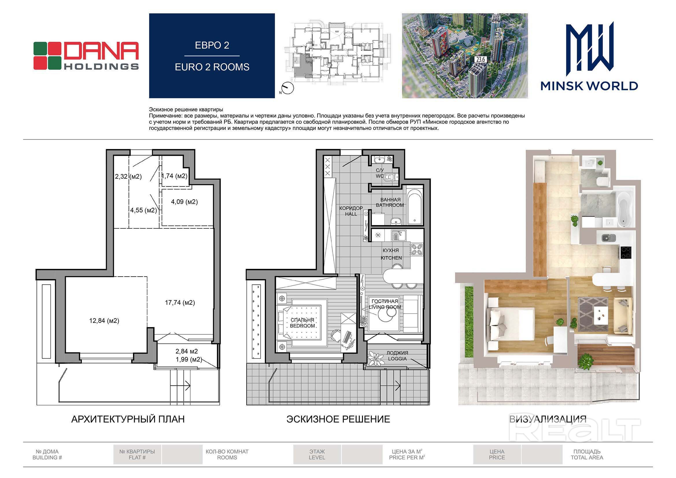 Квартира 2 в Минск Мир / Дом 23.6, площадью 49 кв.м.
