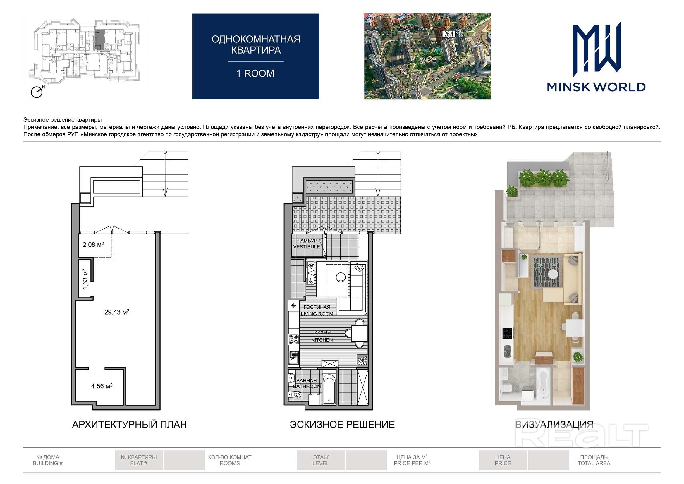 Квартира 1 в Минск Мир / Дом 26.4, площадью 37 кв.м.