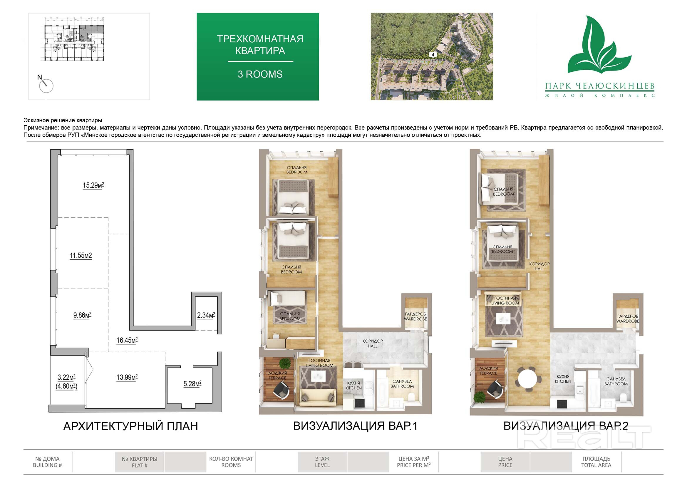 Квартира 110 в Дом 4 / Парк Челюскинцев, площадью 28 кв.м.