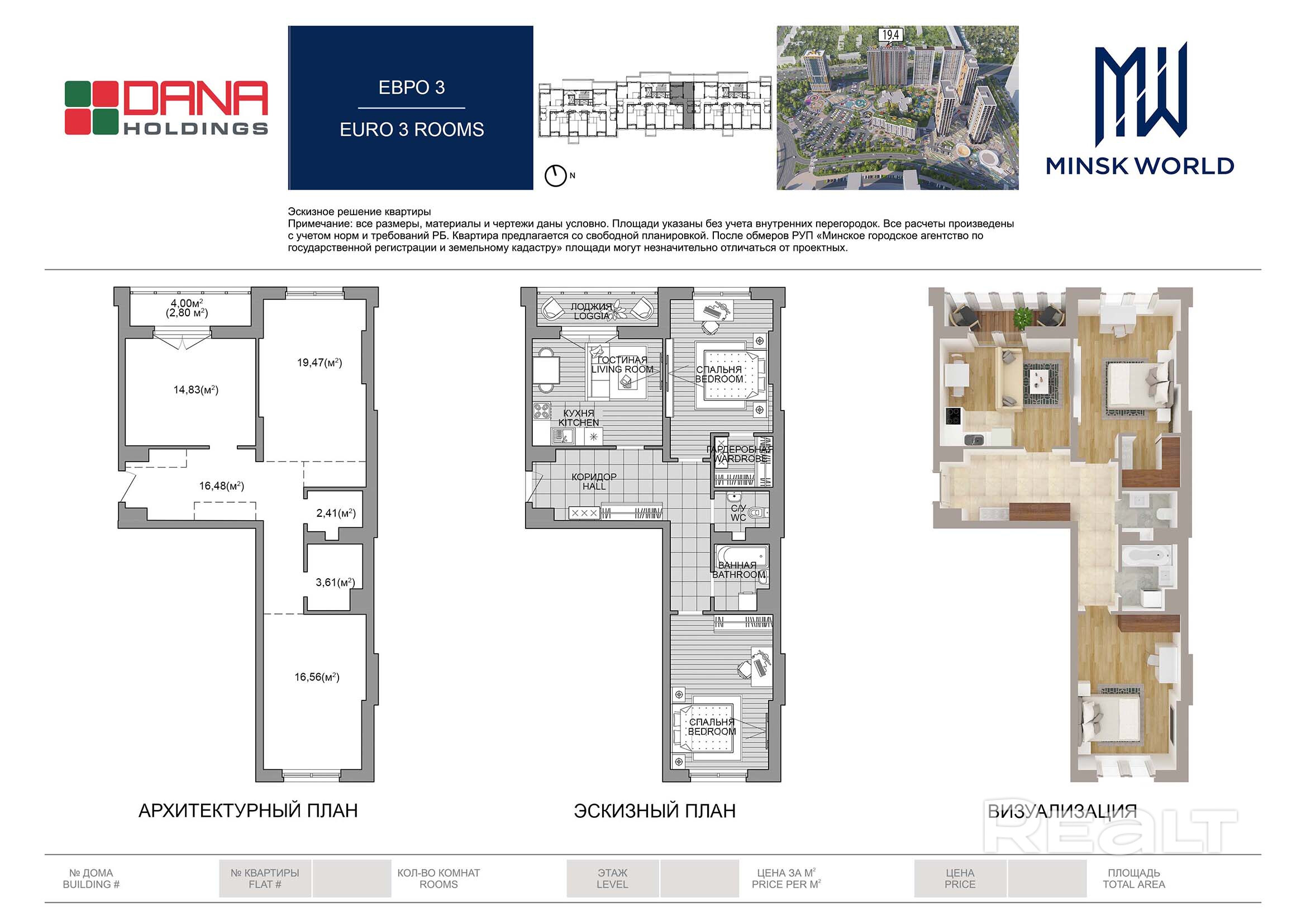 Квартира 129 в Минск Мир / Дом 19.4, площадью 76 кв.м.