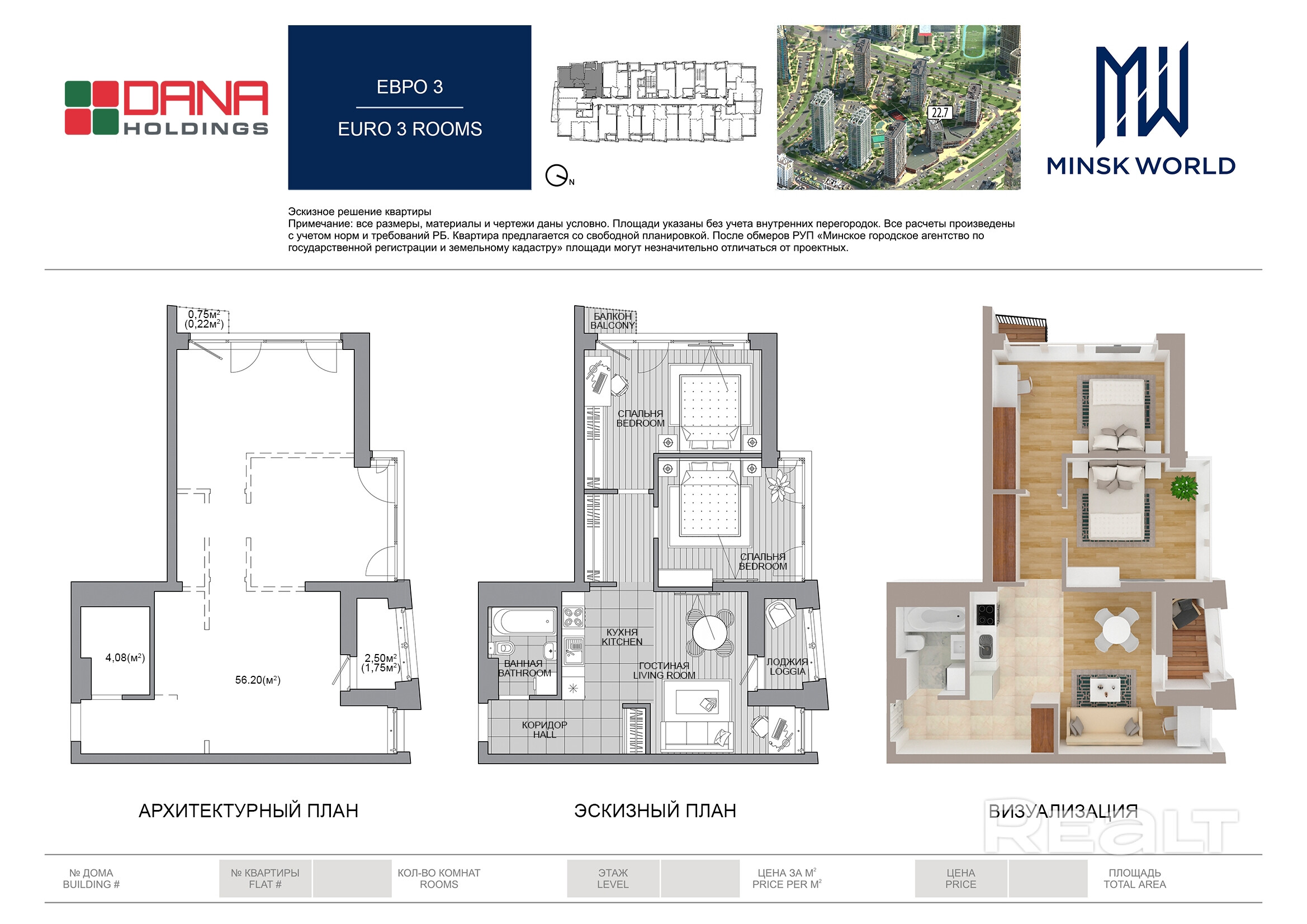 Квартира 67 в Минск Мир / Дом 22.7, площадью 62 кв.м.