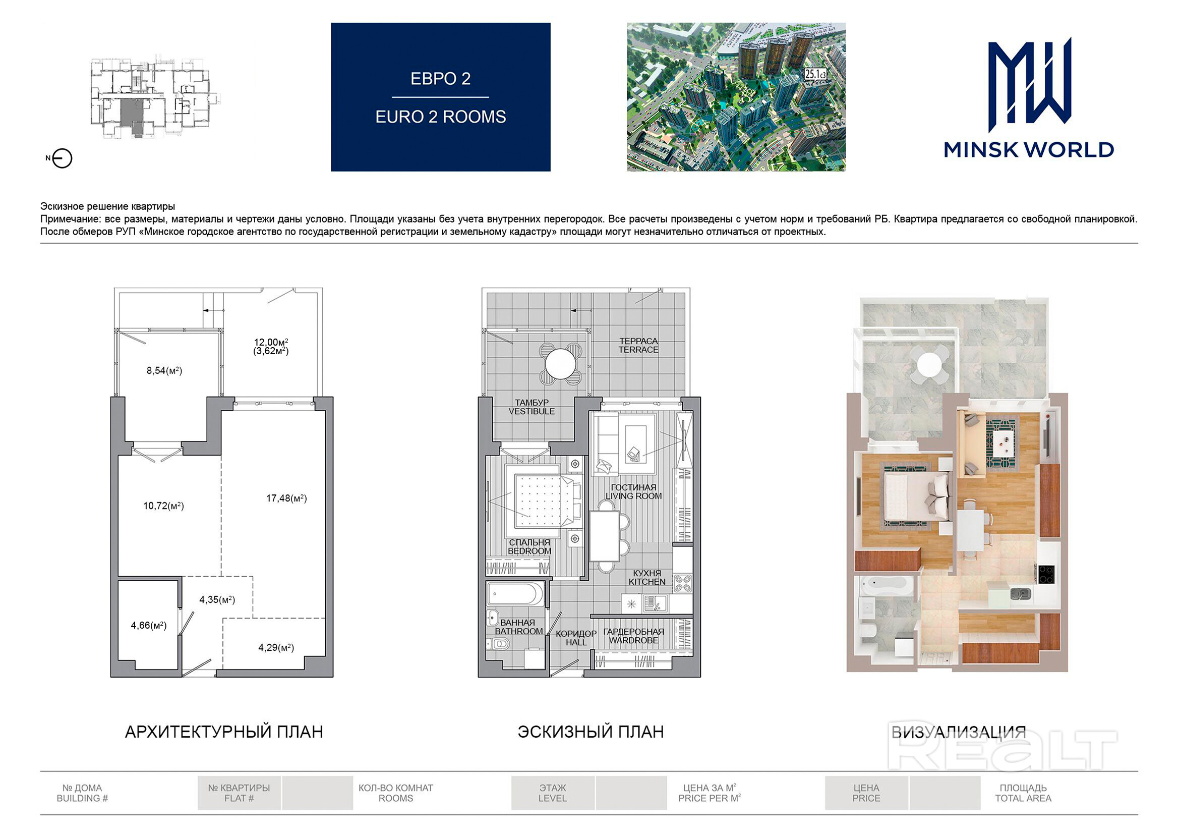 Квартира 216 в Минск Мир / Дом 25.1, площадью 53 кв.м.
