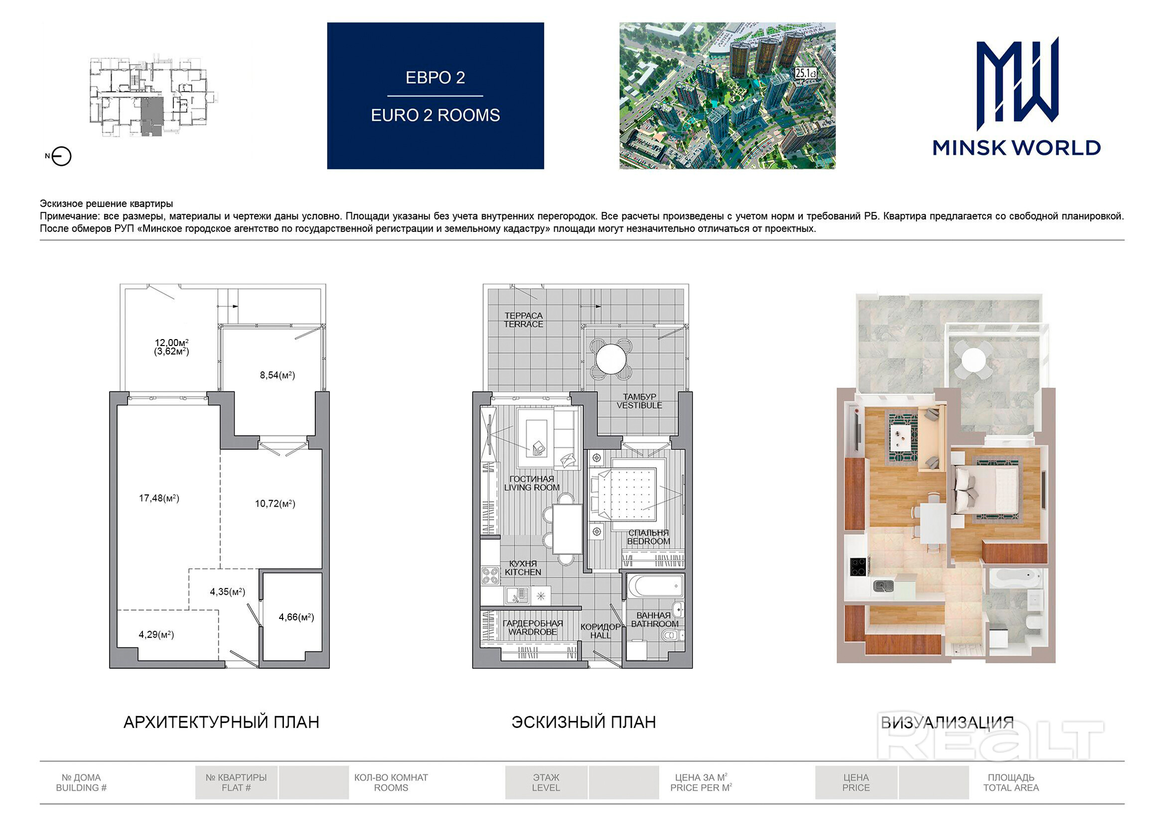 Квартира 215 в Минск Мир / Дом 25.1, площадью 53 кв.м.