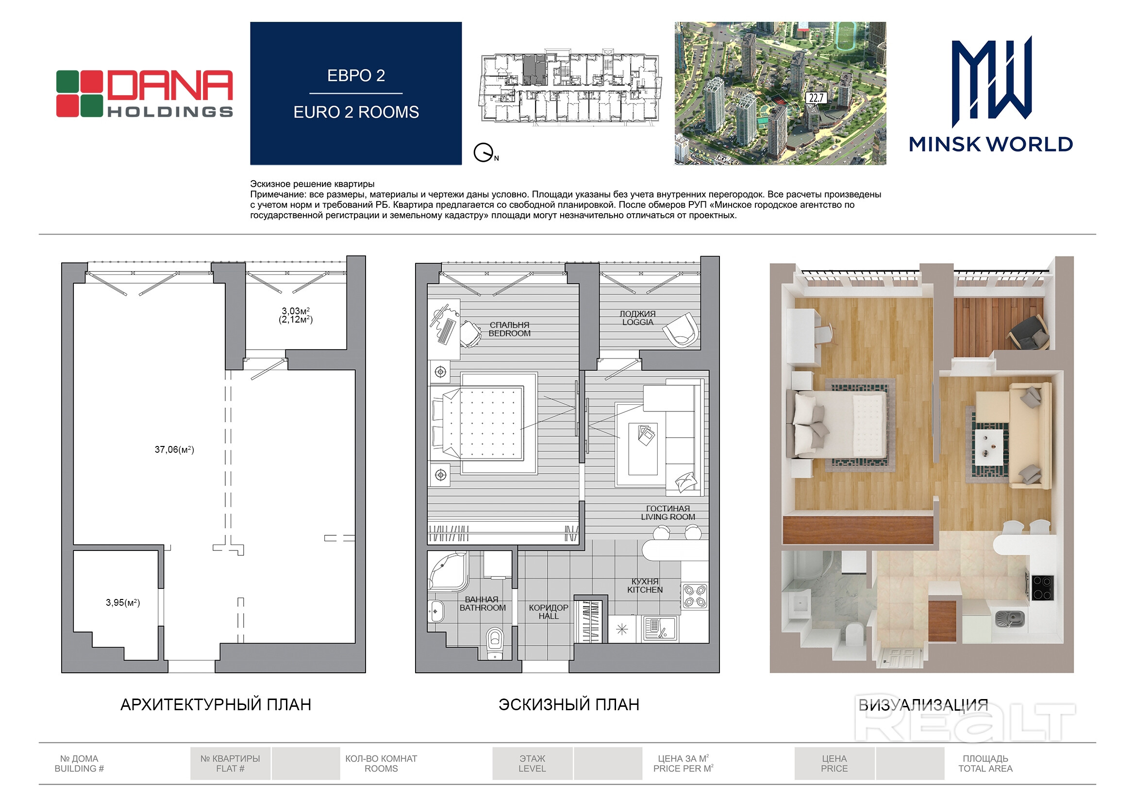 Квартира 16 в Минск Мир / Дом 22.7, площадью 43 кв.м.