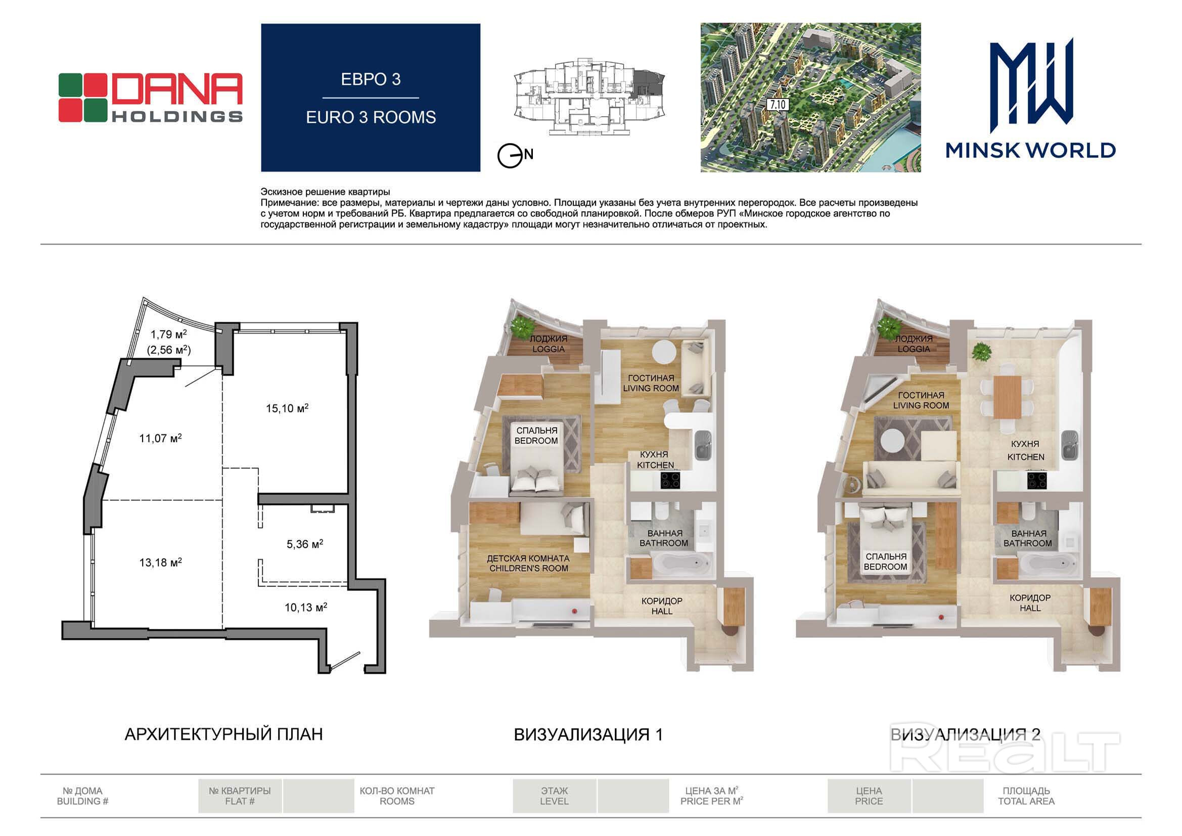 Квартира 3 в Минск Мир / Дом 7.10, площадью 56 кв.м.