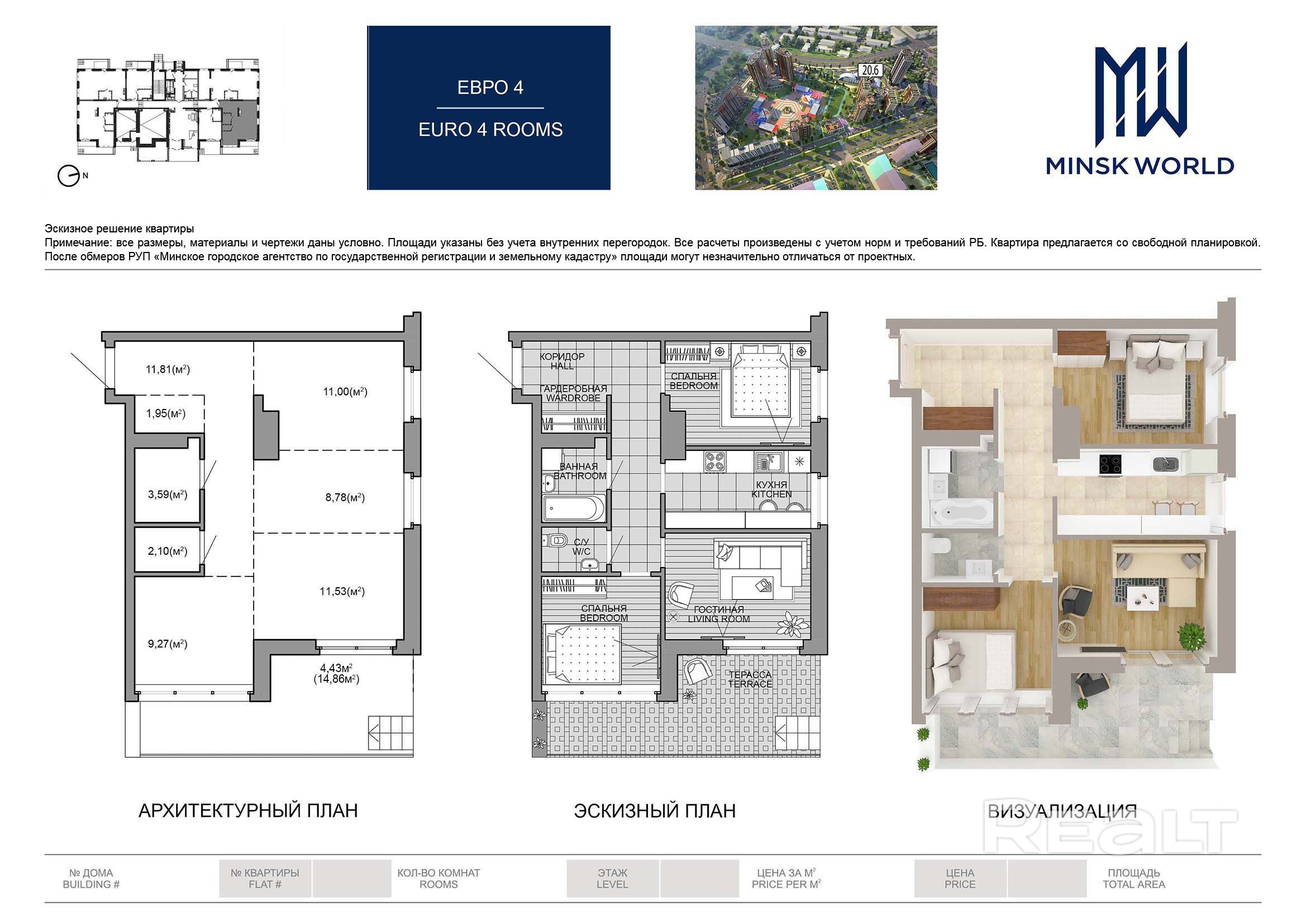 Квартира 2 в Минск Мир / Дом 20.6, площадью 65 кв.м.