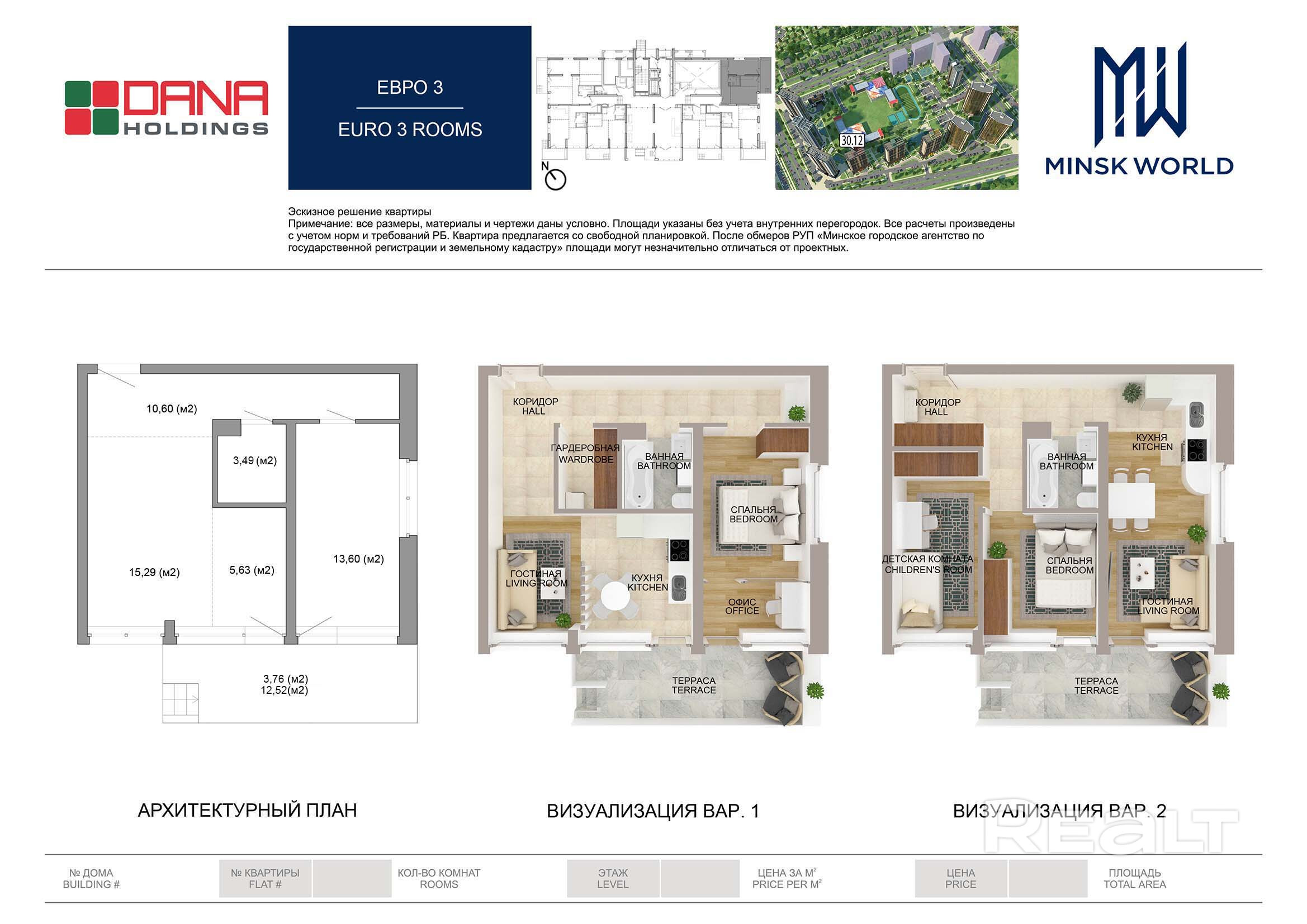 Квартира 1 в Минск Мир / Дом 30.12, площадью 52 кв.м.