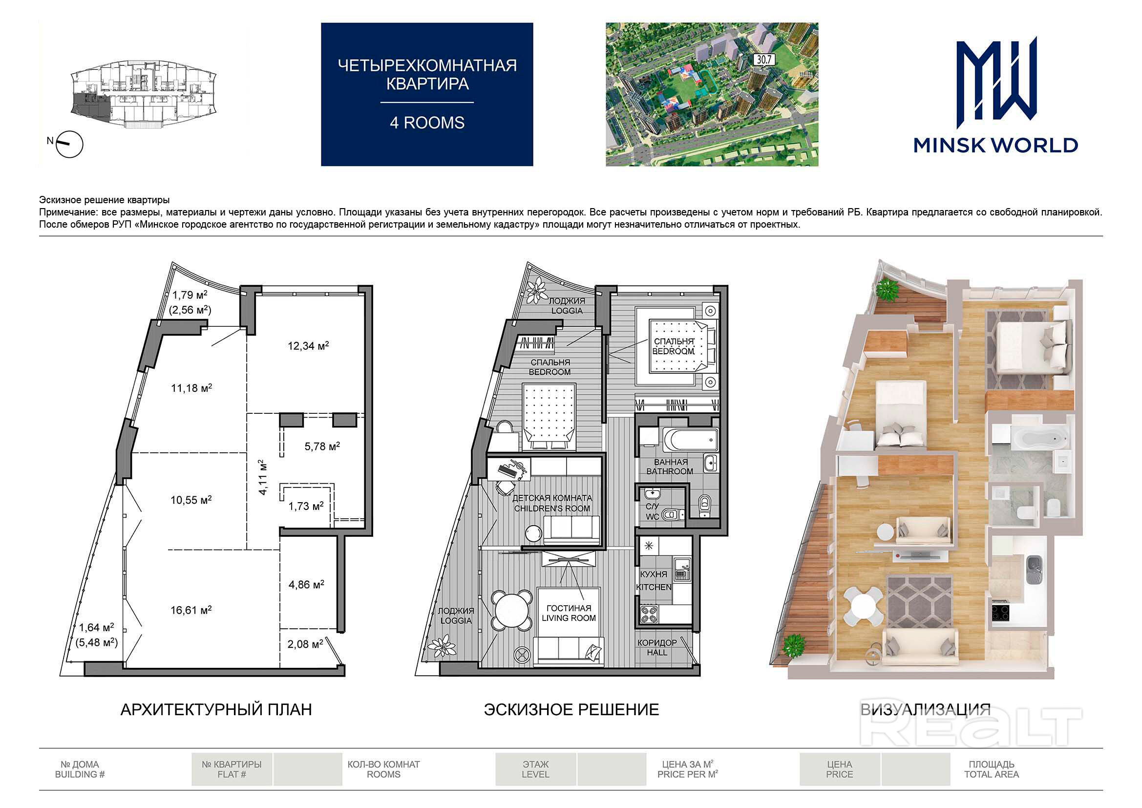 Квартира 15 в Минск Мир / Дом 30.7, площадью 71 кв.м.