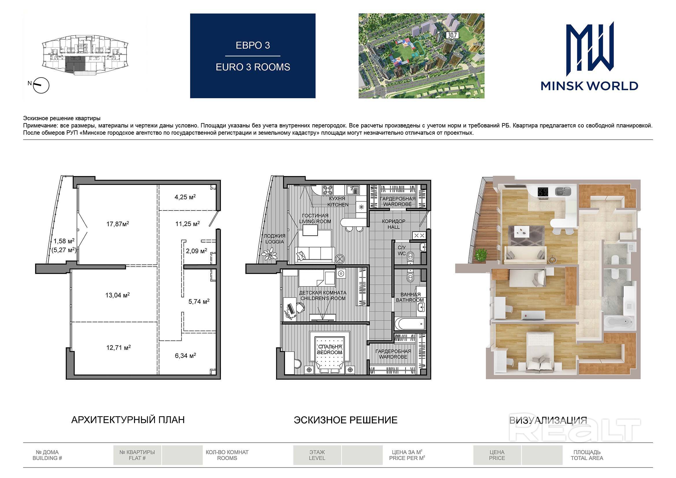 Квартира 14 в Минск Мир / Дом 30.7, площадью 74 кв.м.