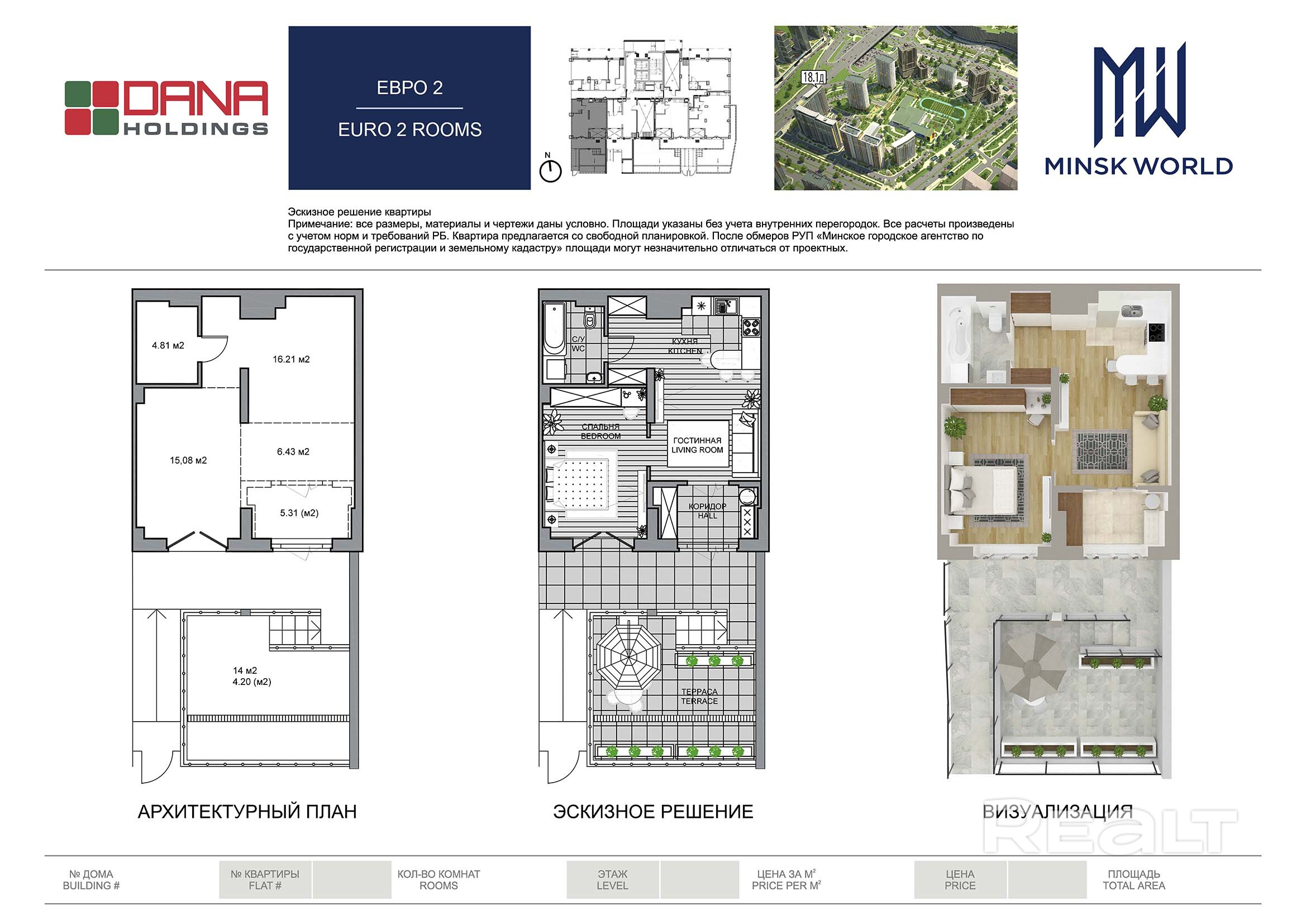 Квартира 1 в Минск Мир / Дом 18.1, площадью 60 кв.м.