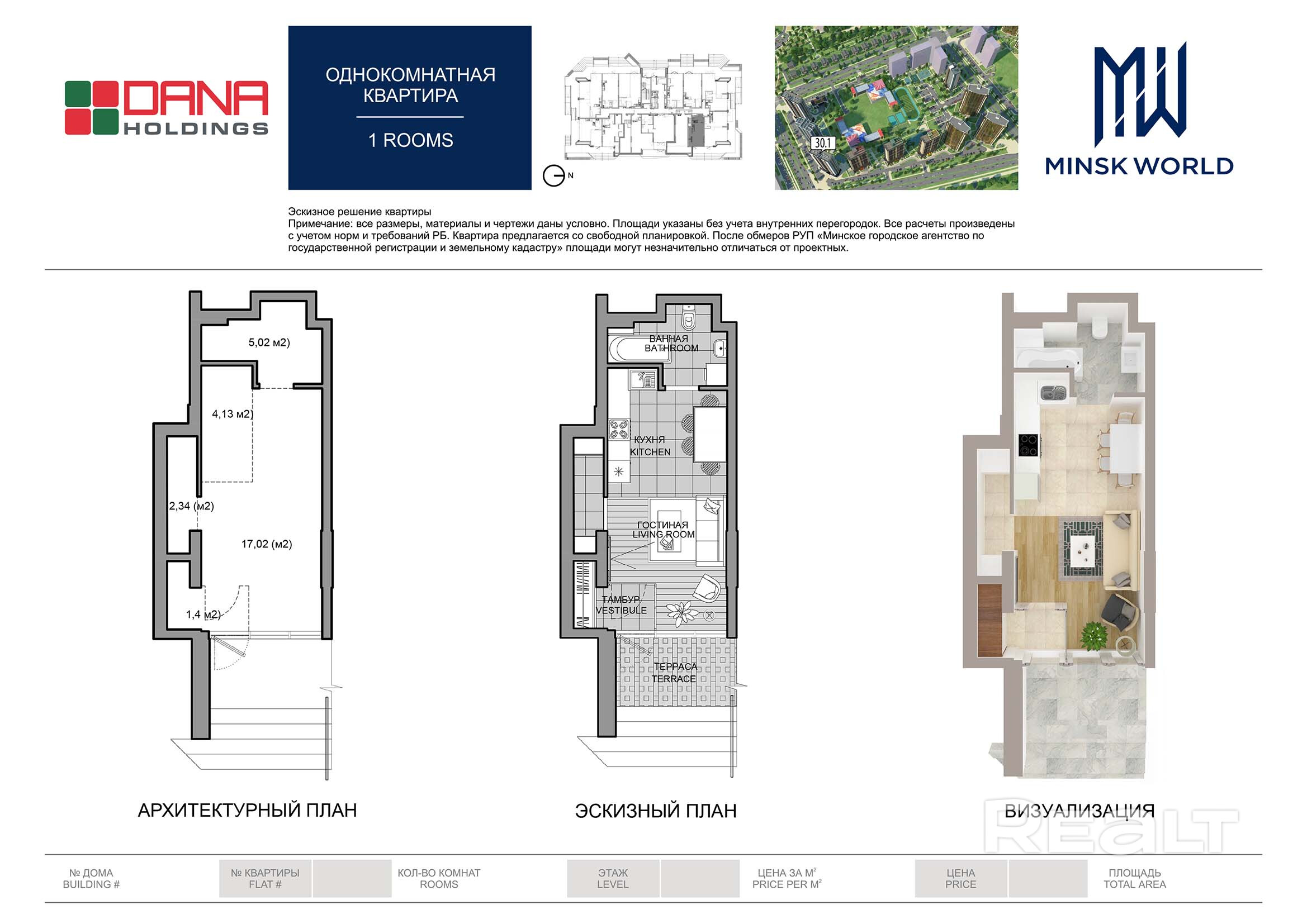 Квартира 5 в Минск Мир / Дом 30.1, площадью 36 кв.м.