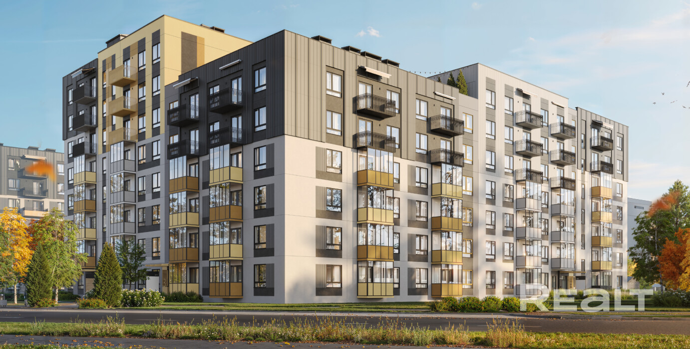 Застройка кварталов состоит из ситихаусов – дома из монолитного и сборного железобетона этажностью от 4 до 9 этажей, разработанного в скандинавском стиле, утопающего в зелени деревьев.