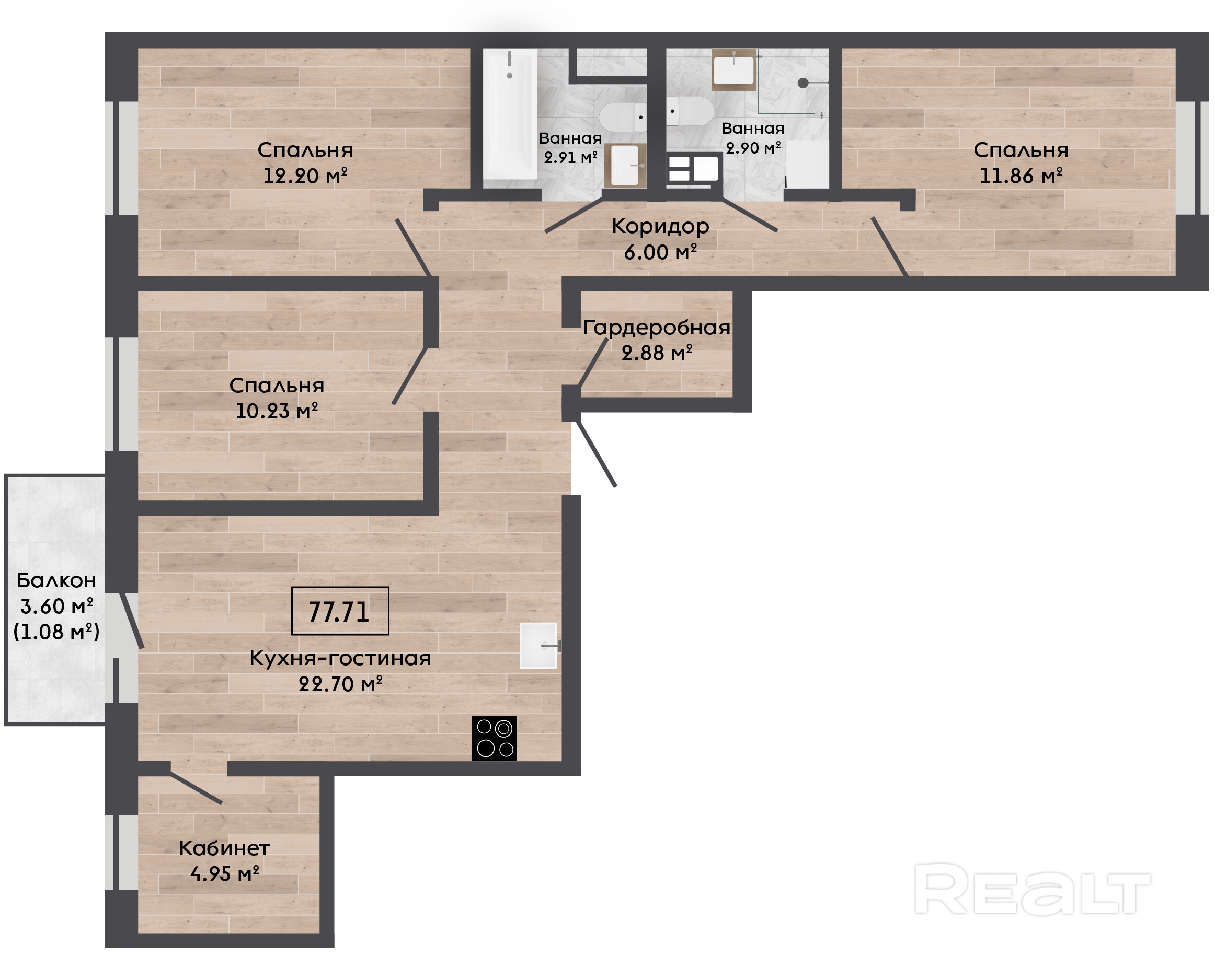 4-комнатная квартира в Зеленой гавани с кабинетом, гардеробной и отделкой Basic!