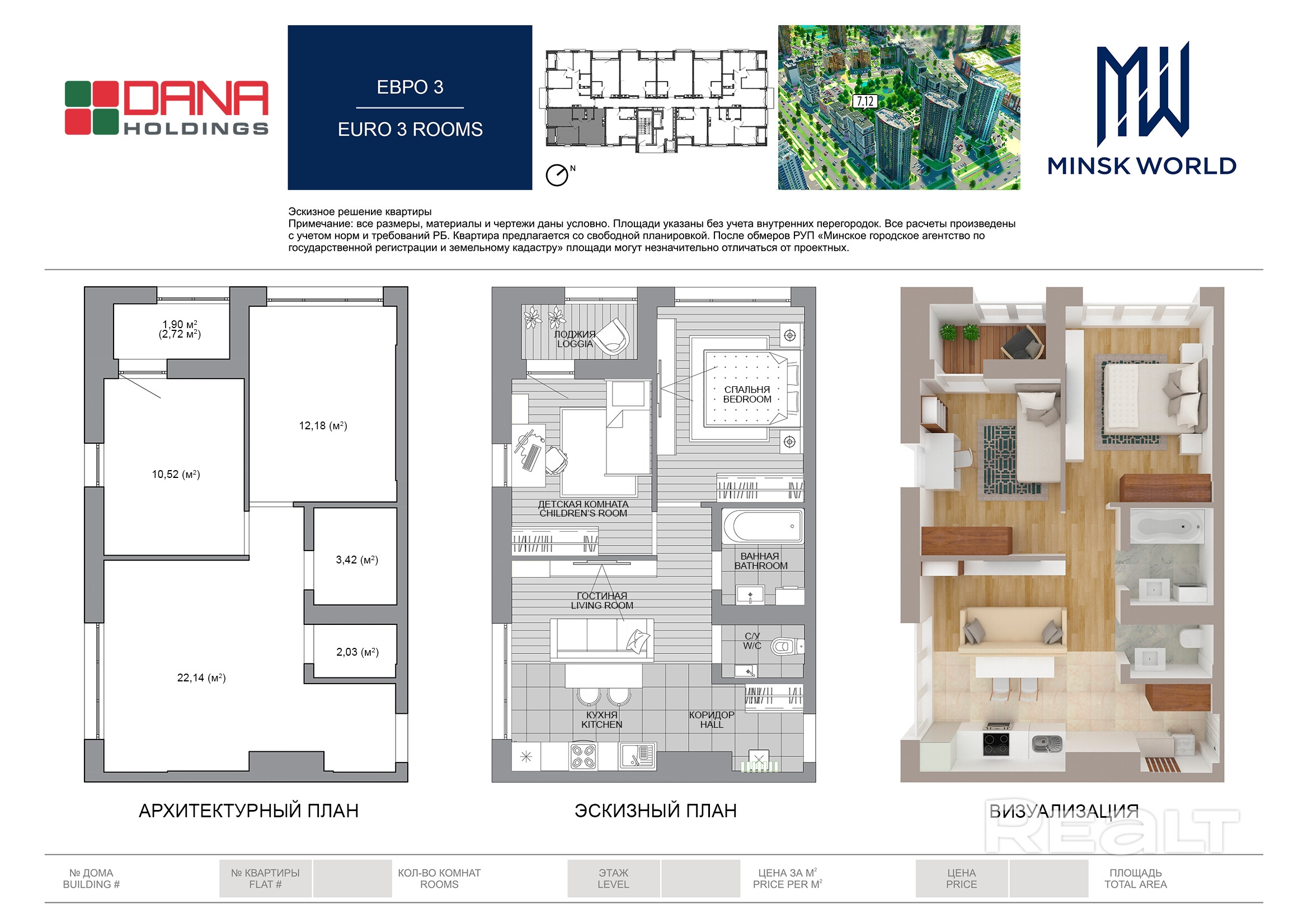 Квартира 82 в Минск Мир / Дом 7.12, площадью 51 кв.м.