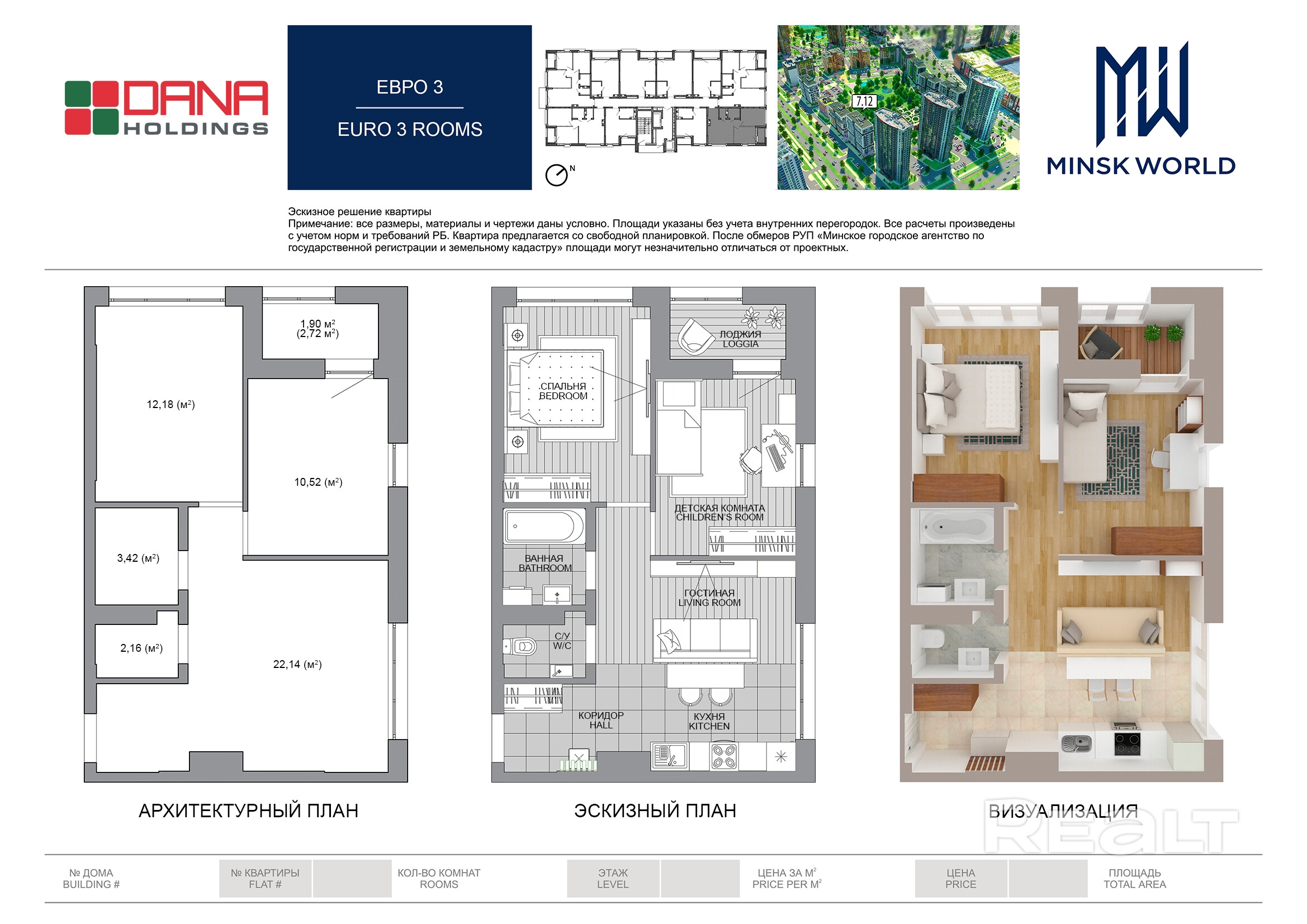 Квартира 49 в Минск Мир / Дом 7.12, площадью 52 кв.м.