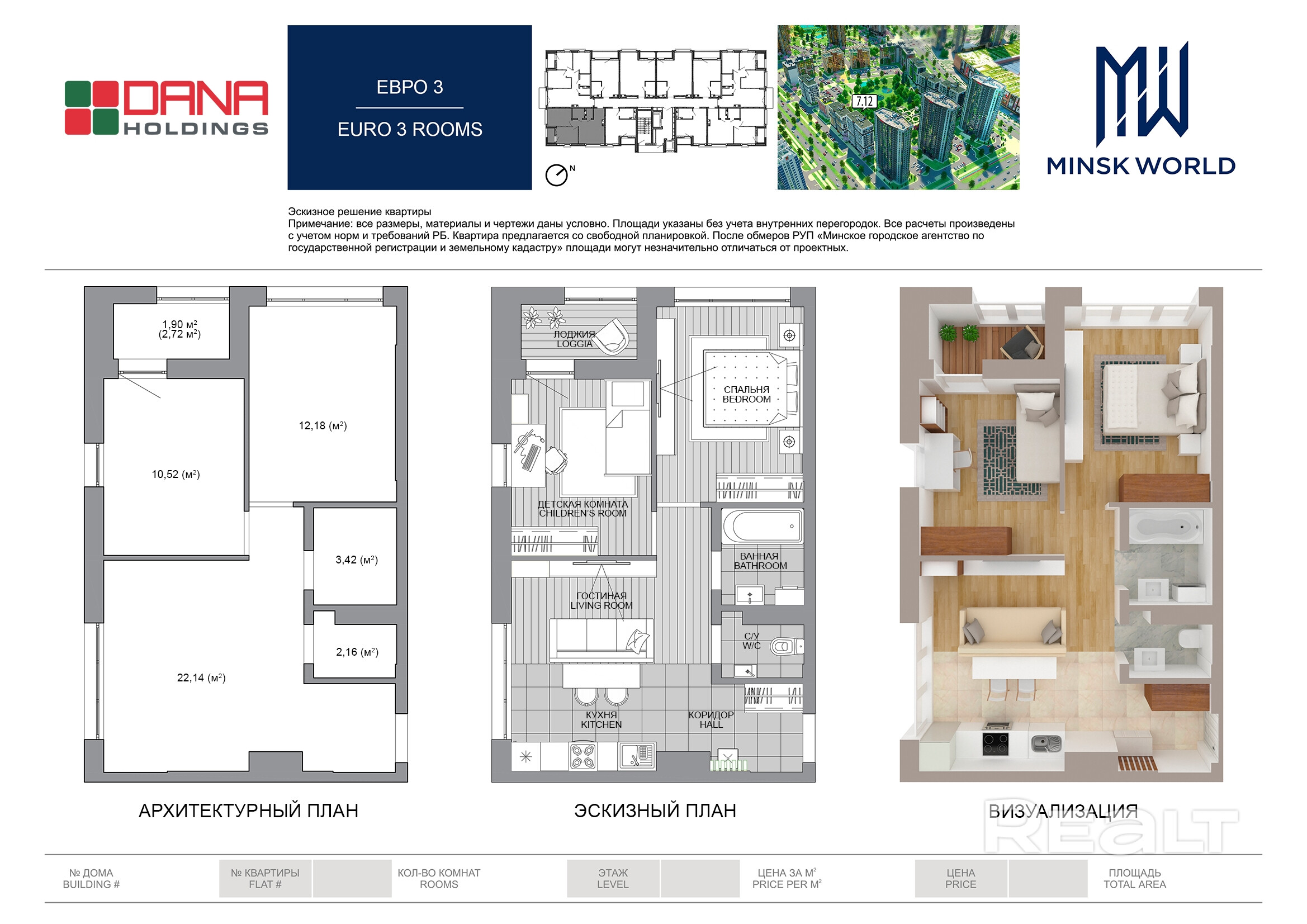 Квартира 12 в Минск Мир / Дом 7.12, площадью 52 кв.м.