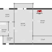 Общая площадь квартиры составляет 42,6 кв.м., жилая- 26.7 кв.м., кухня- 6. кв.м.