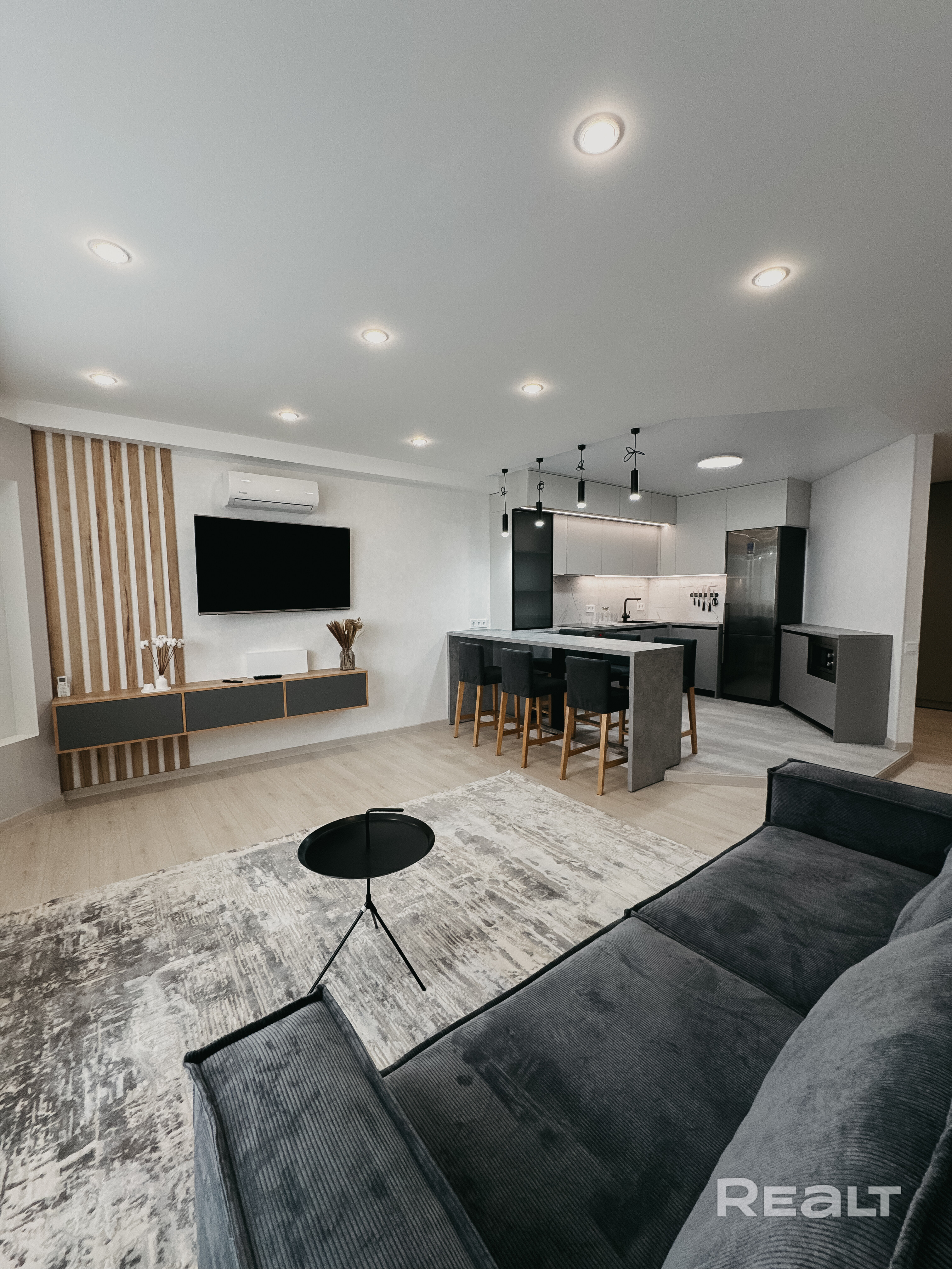 Продается элитная квартира с дизайнерским ремонтом трех ком., Новая квартира. С французскими окнами, видом на улицу Богдановича, личным парковочным местом. Полный ремонт 2025г, новая мебель, сантехника, Лед подсветка, встроенная бытовая техника, посудомойка. Никто не проживал после ремонта. Установлен новый кондиционер, бойлер. Тамбур на две квартиры, Инт + IPTV. На территория дома установлено видео наблюдение, постоянно дежурит консьерж. Строится метро 200м. Просьба Агентство не Беспокоить