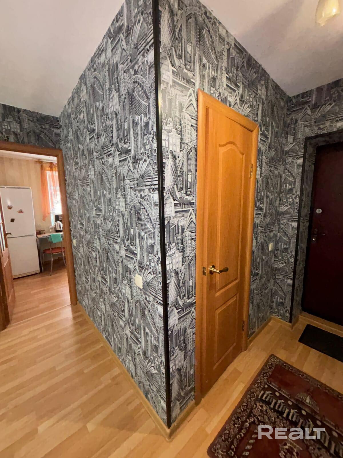 В квартире сделан косметический ремонт. Остается встроенная кухня с техникой, холодильник, стиральная машина. На полу ламинат. Остается шкаф-купе, кровать, гарнитур в комнате. Санузел в плитке современного образца. Окна в квартире выходят в зеленый двор.