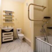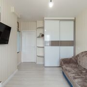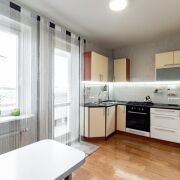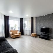 2015 гп. 5/9 этаж, трехслойные железобетонные панели, общая площадь по СНБ 92,6 кв.м., жилая 50 кв.м, кухня 12 кв.м. с выходом на застекленную лоджию из кухни (3 кв.м.) Высота помещений 2.65 м, эркер в зале, имеются вместительные гардеробная и шкафы-купе, два больших санузла: ванна и душевая.