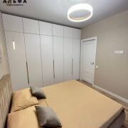 - Удобная планировка: просторная уютная спальня: выполнена в спокойных тонах, способствующих полноценному отдыху и крепкому сну. Также в спальне установлен огромный шкаф, выполненный под заказ. А балкон и застекленная лоджия, станут любимым местом для отдыха.