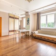 Квартира включает в себя три раздельные жилые комнаты, просторную кухню-гостиную и совмещенный санузел.