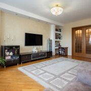 3 раздельные комнаты (21,5 кв.м, 13,5 кв.м и 10,1 кв.м), кухня с оборудованной для отдыха лоджией, большой коридор, паркет, межкомнатные двери из массива.