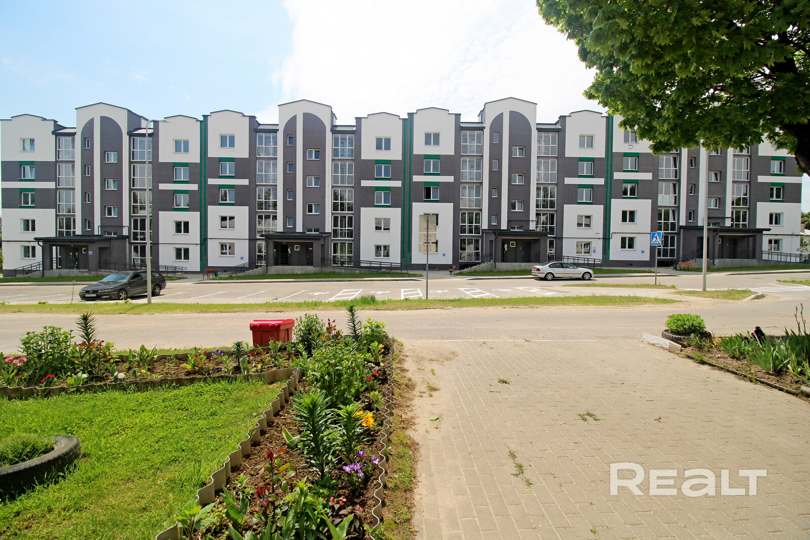 Большое количество парковочных мест во дворе.