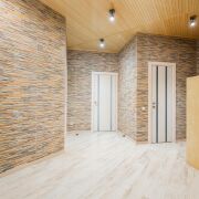 - Полы из бамбукового паркета: прочный, экологичный и невероятно приятный на ощупь материал, который прослужит десятилетиями. Потолок также выполнен из бамбука, создавая ощущение теплоты и природной гармонии. Межкомнатные двери из массива дуба со стеклянными вставками подчёркивают статус и придают интерьеру изысканность.